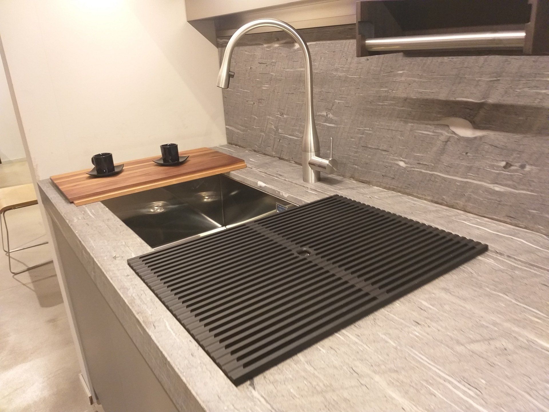 Piano in pietra Grey con ribasso zona lavello